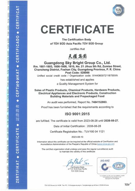 Sky Bright Group is proud to be ISO 9001:2015 certified, a testament to our unwavering commitment to quality, consistency, and continuous improvement. This internationally recognized standard is not just a certificate on our wall; it is the foundational framework that governs every aspect of our operations, from raw material sourcing to final product delivery.